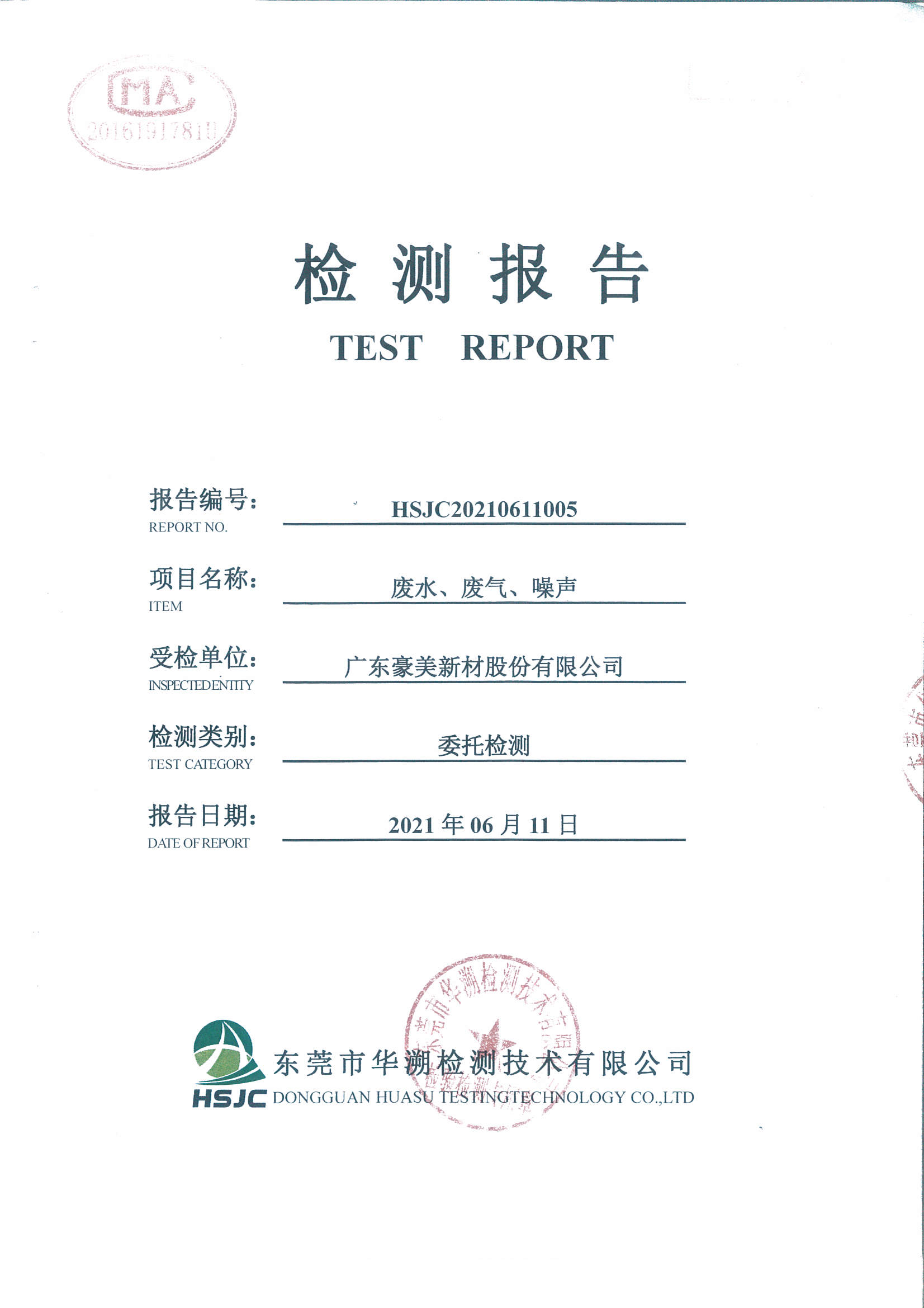 廣東豪美新材股份有限公司三廢檢測(cè)報(bào)告